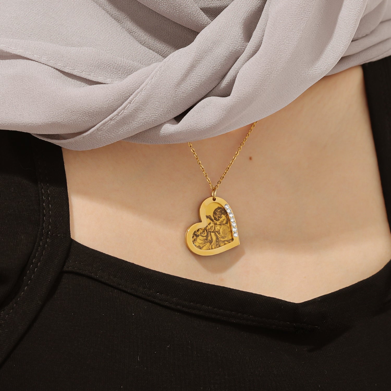 Benutzerdefinierte Bild graviertes Herz Diamantkette
