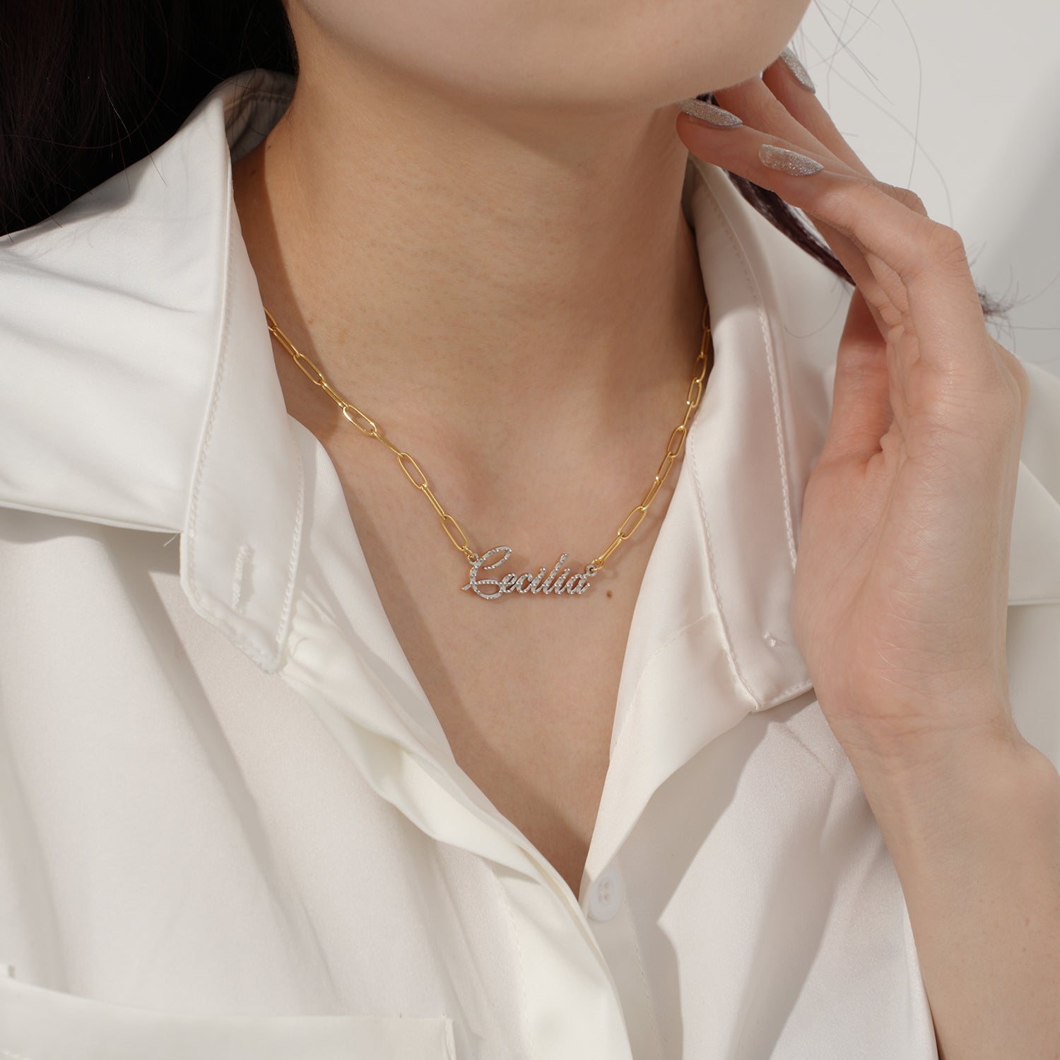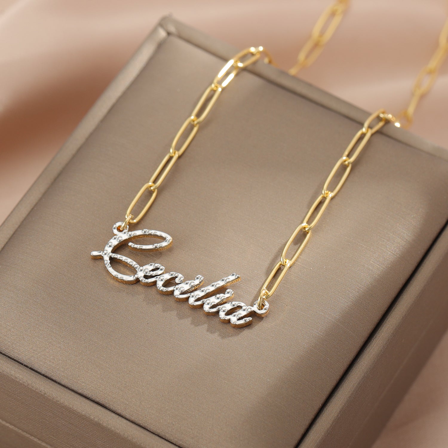 Der PAPLE -Clip -Name -Halskette ist eine schicke und moderne Sicht auf personalisierten Schmuck. Diese Halskette bietet eine trendige Büroclip -Kette und bietet eine stilvolle Kante, die sich perfekt zum Erhöhung eines jeden Looks eignet. Passen Sie es mit einem Namen oder Wort Ihrer Wahl an und machen Sie es eindeutig mit Ihrem oder einem nachdenklichen Geschenk für jemanden, der etwas Besonderes ist.