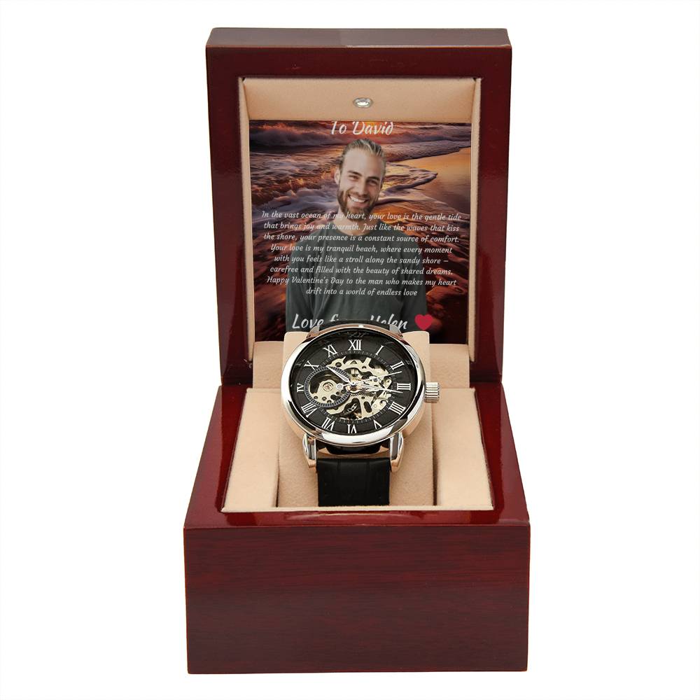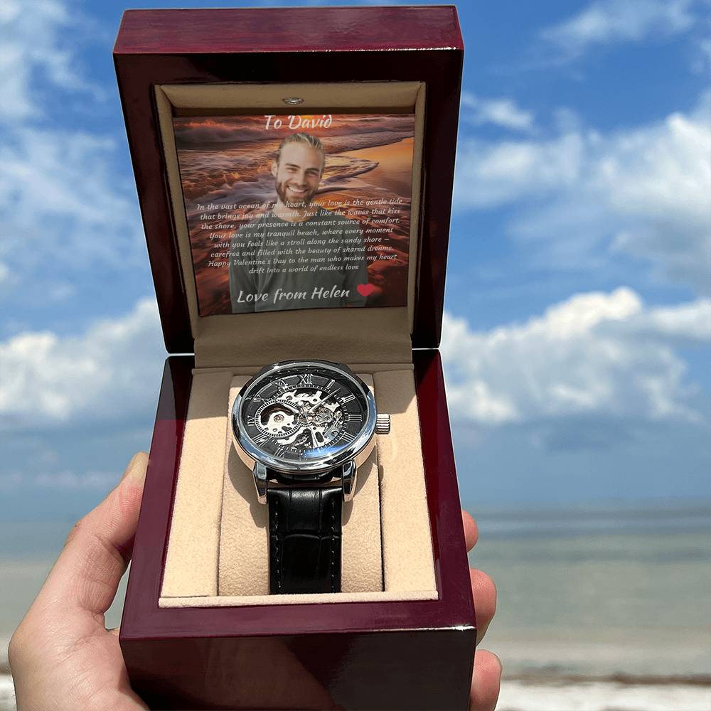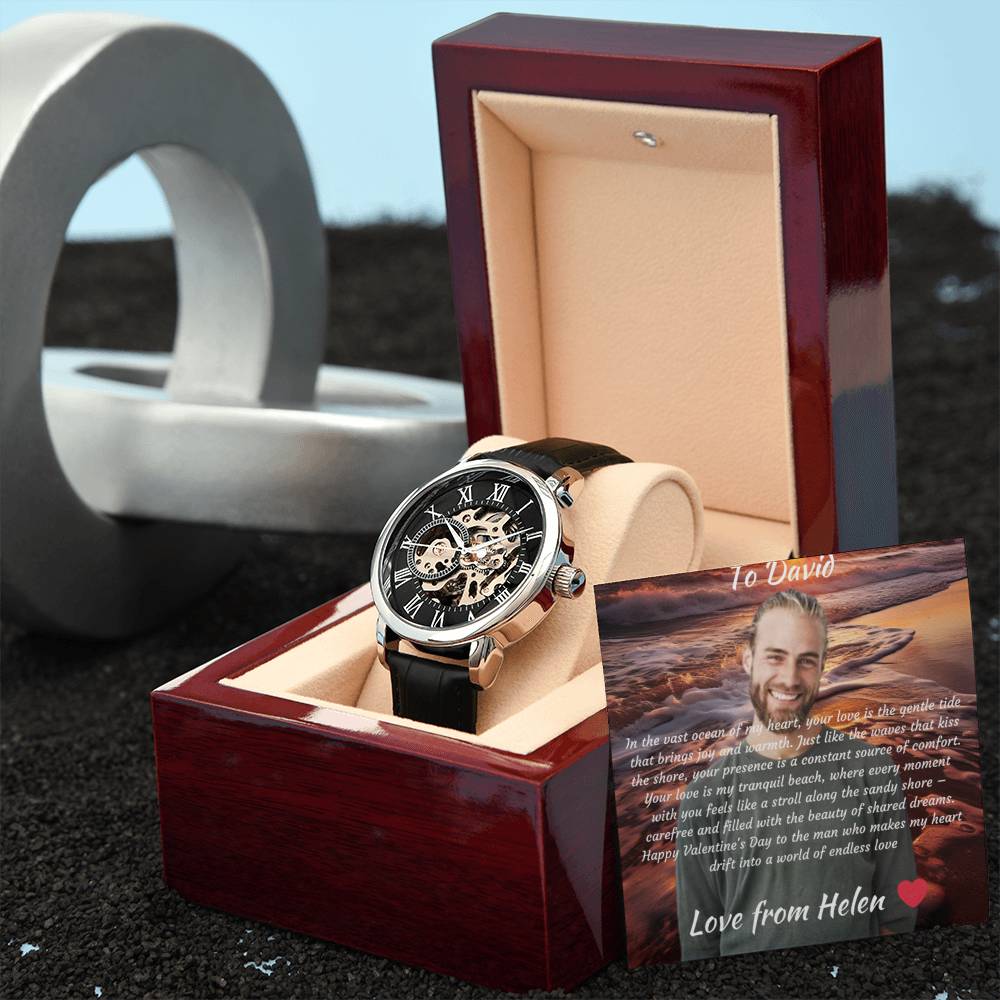Ihre Uhr ist liebevoll in unserer Luxusbox im Mahagoni -Stil für einfache Geschenke verpackt.