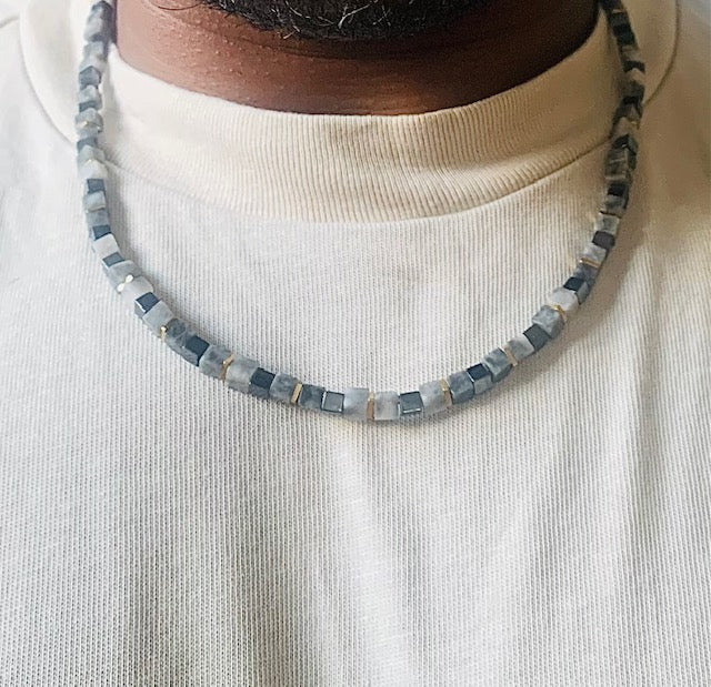 Hawk Eye & Hämatit Halskette - Luxus mit Absicht