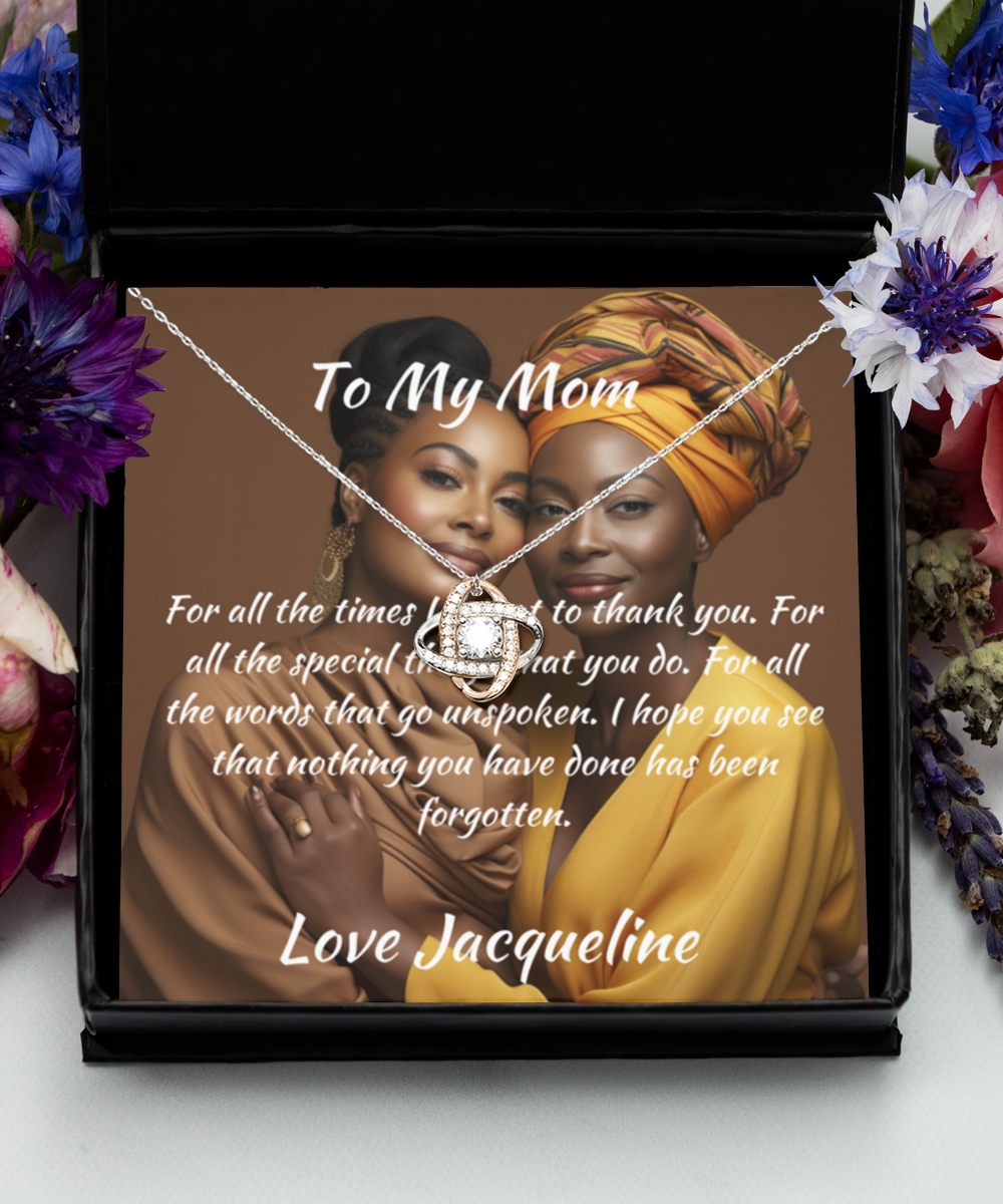 Geschenk für Ihre Mutter, Mutter und Tochter Nachrichtenkarte & Love Knot Halskette