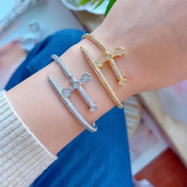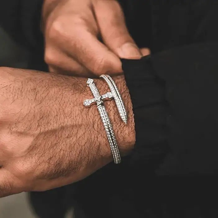 Machen Sie mit unserem Eiste -Dolcharmband ein heftiges Statement -Statement, das einzigartig in Form eines schlanken, schimmernden Dolchs gefertigt ist. Mit strahlenden Steinen verkrustet, symbolisiert dieses mutige Stück Kraft und Eleganz, perfekt für diejenigen, die sich wagen, sich abzuheben. Ein wahrer Gesprächsstarter und ein Muss für Ihre Schmuckkollektion!