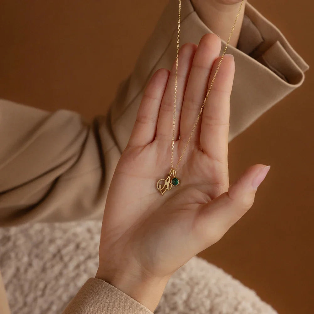 - Stil: Diese Halskette verfügt über einen wunderbar zierlichen Kursivbrief anfänglich, der durch ein kleines Herzdesign im Buchstaben verknüpft ist und einen Hauch von Romantik verleiht. Um den Look zu vervollständigen, baumelt ein kleiner Geburtssteinzauber neben dem Buchstaben zart und macht dieses Stück sowohl sinnvoll als auch auffällig. Die minimale Kette trägt zu ihrer raffinierten, eleganten Attraktivität bei.