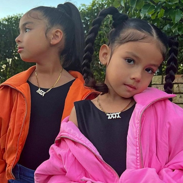 Collar de nombre de "comida para llevar" de doble plateado para niños