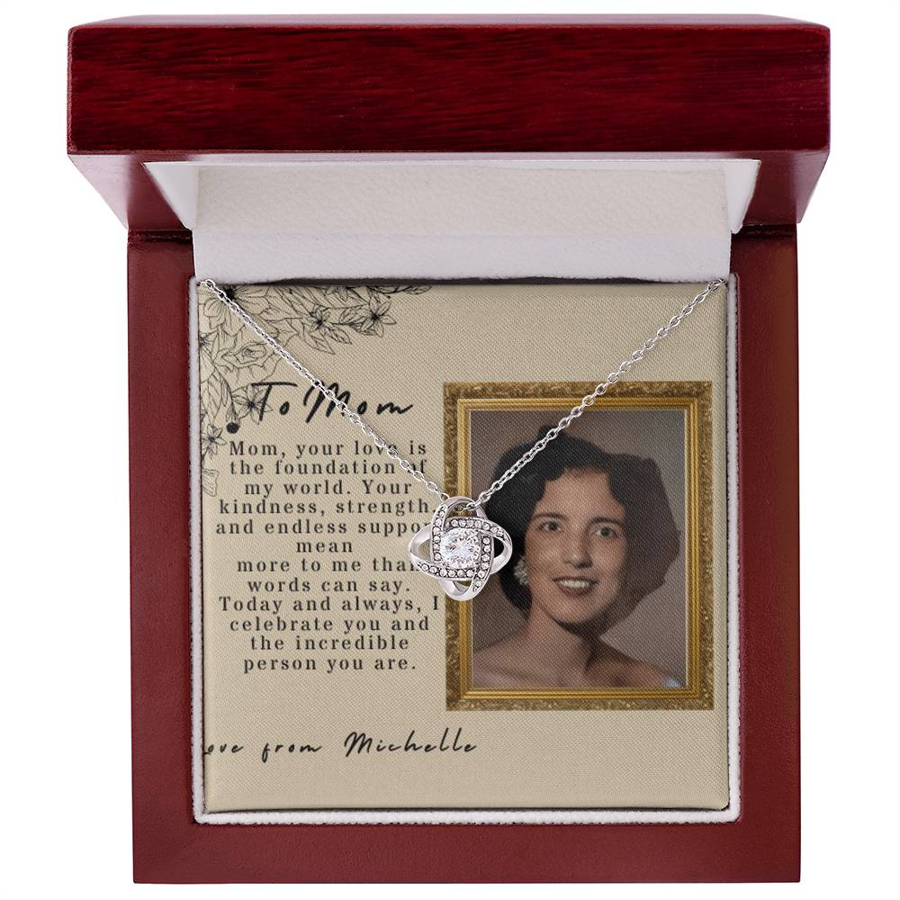 Collar de nudo de amor, tarjeta de mensaje de foto personalizada y foto animada
