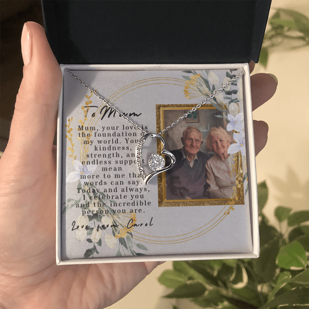El deslumbrante Collar de amor para siempre ¡Seguro que hará que su corazón se derrita! Este collar presenta un impresionante cristal CZ de 6.5 mm rodeado por un colgante de corazón pulido adornado con cristales más pequeños para agregar brillo y brillo adicionales. Bellamente elaborada con un acabado blanco de oro o oro amarillo, asegúrese de darle un regalo clásico que pueda disfrutar todos los días.