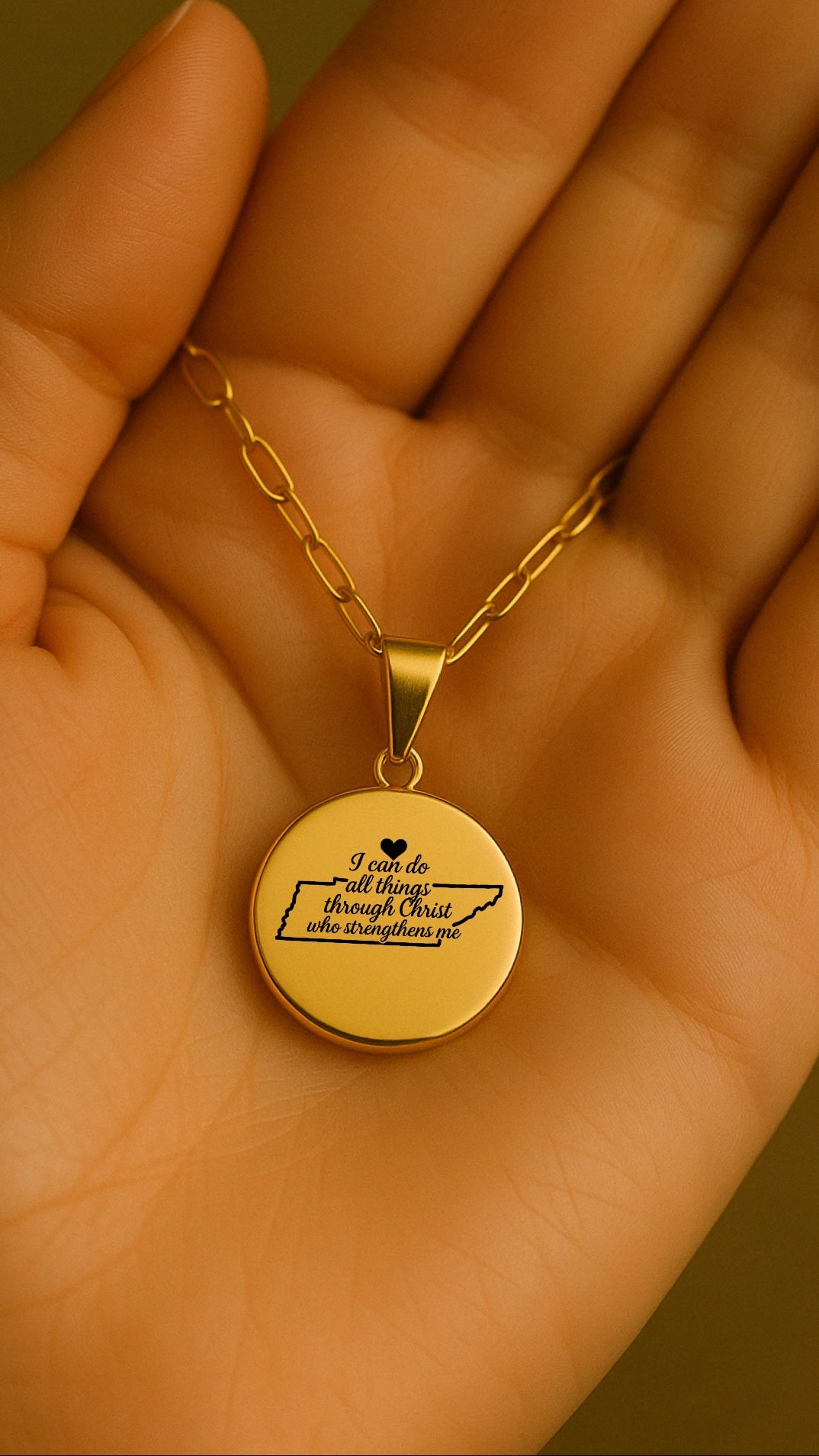 Este elegante mapa de tennesee de doble lado Filipenses 4: 3 El collar inicial presenta el versículo bíblico incorporado en el contorno de Tennessee en un lado y su inicial en el otro lado combinando el amor de dónde es su encanto y fe personalizado.
