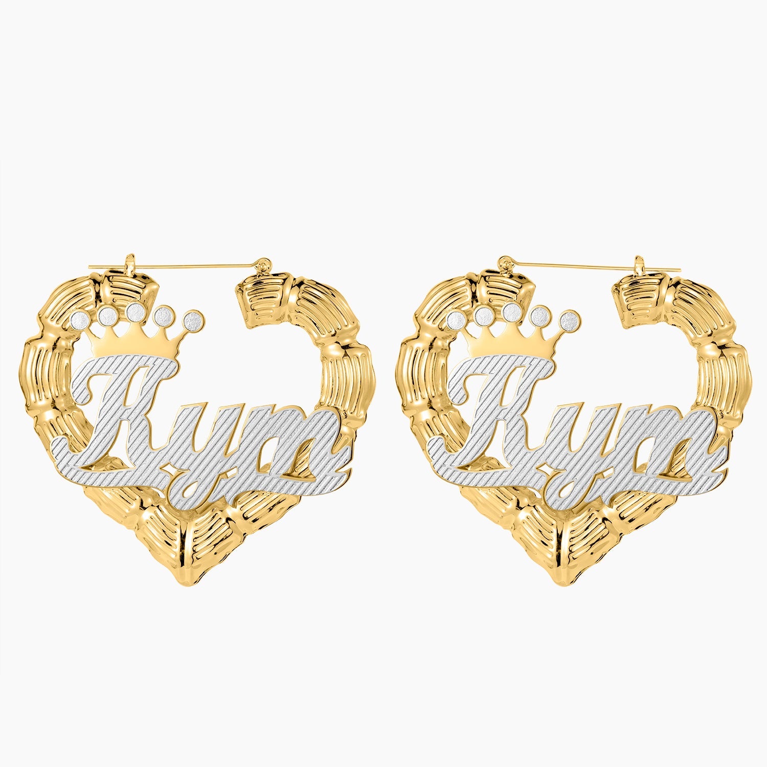 Boucles d'oreilles de nom de coeur bambou à deux tons qe530