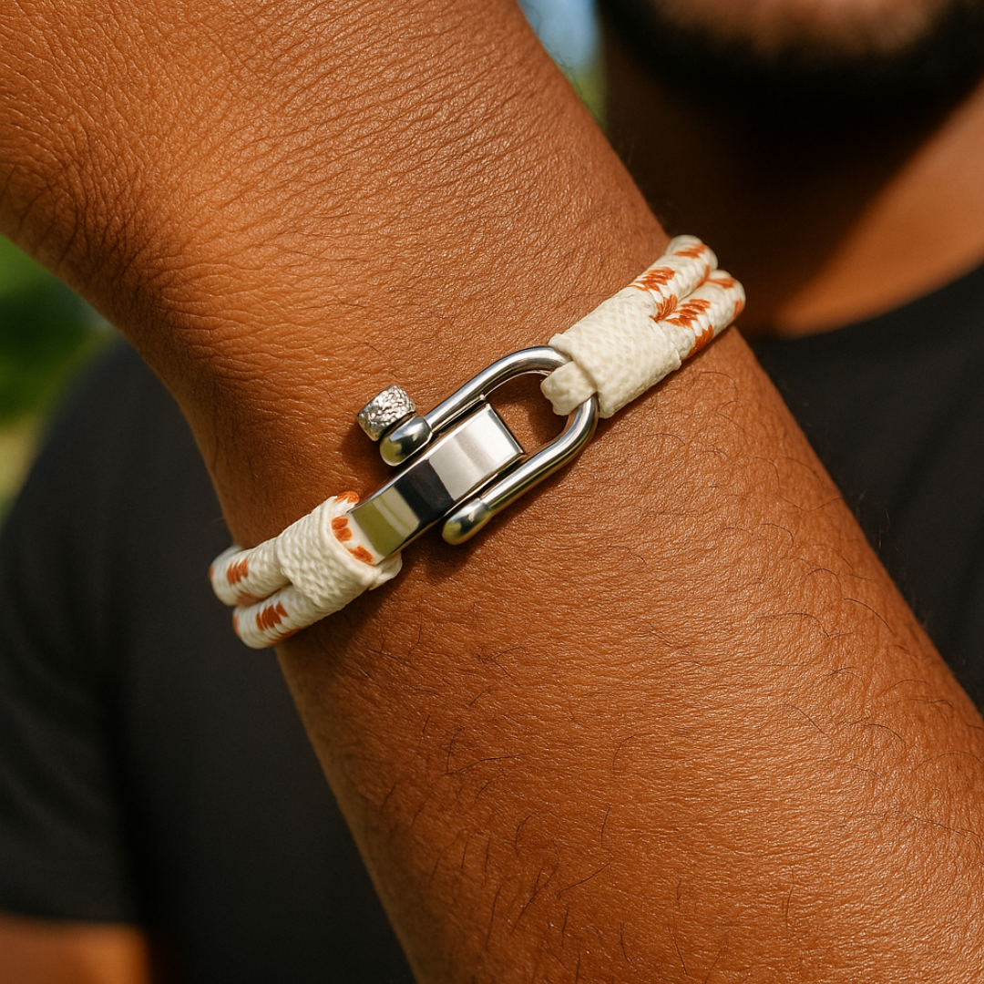 Ce bracelet en corde nautique pour hommes est conçu pour l'usure quotidienne. Il dispose d'une forme U à double brin en acier inoxydable, offrant à la fois le style et les fonctionnalités. Parfait pour ceux qui apprécient l'esthétique nautique, ce bracelet ajoute une touche unique à toute tenue.