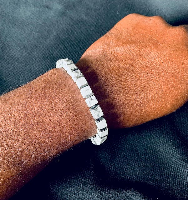 Bracelet pour hommes Blanc White Hurlite Gemstone, bijoux faits à la main pour hommes, bracelets en pierre naturels pour hommes, cadeaux uniques pour hommes, cadeau pour lui