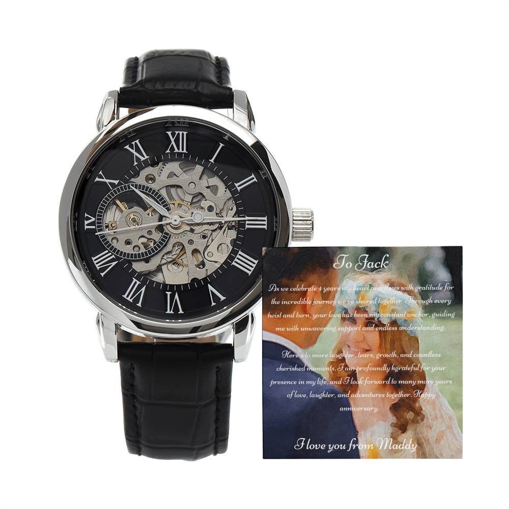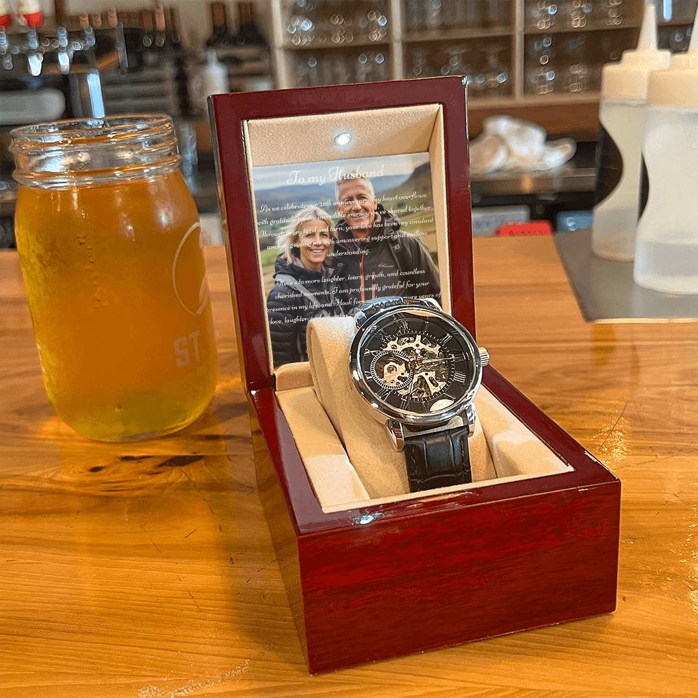 Cadeau d'anniversaire pour mari | Carte de message personnalisée, boîte de luxe et montre ouverte