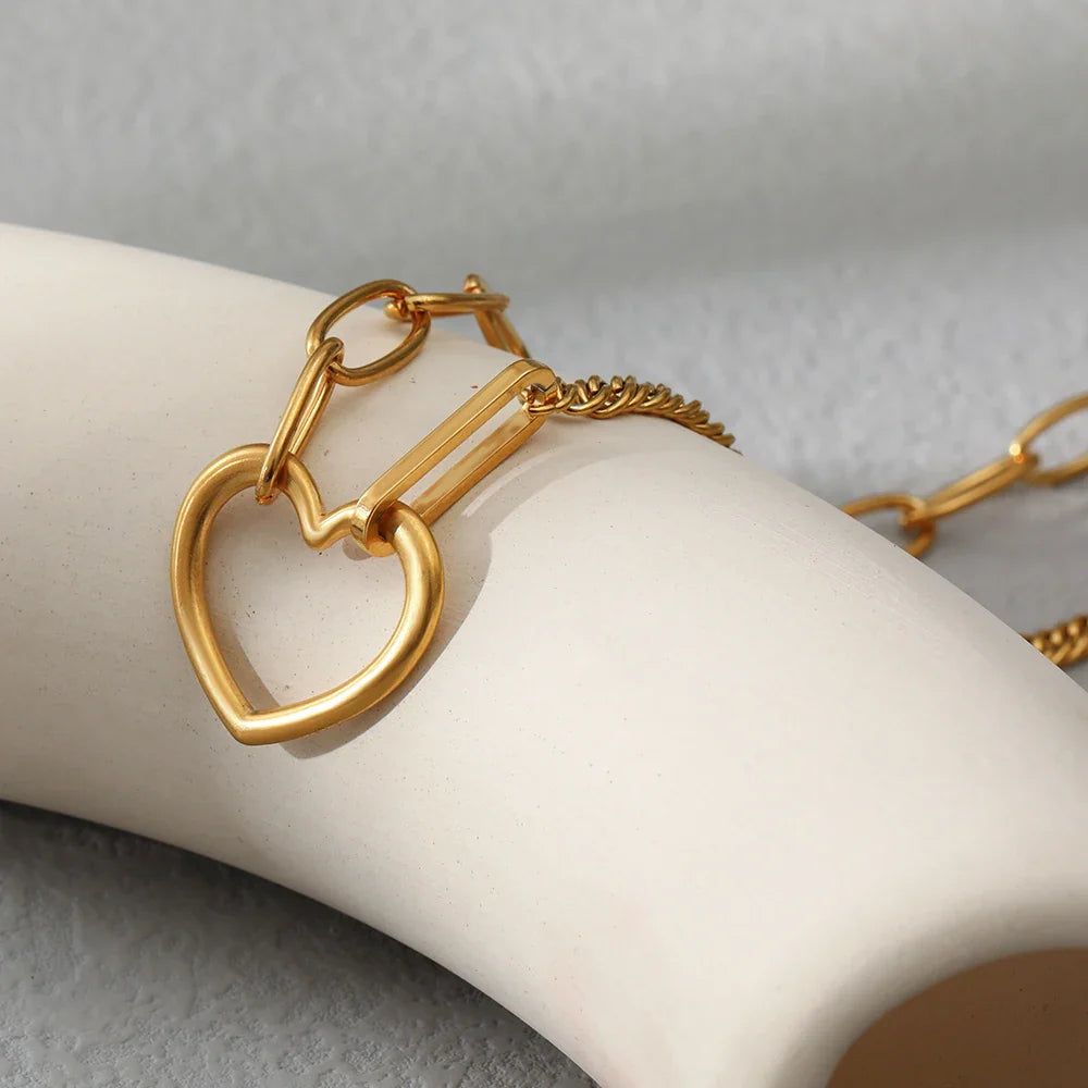 - Style: Features a striking combination of half paperclip chain and half curb chain, seamlessly connected to an open heart pendant, creating a sophisticated and balanced design that captures attention.