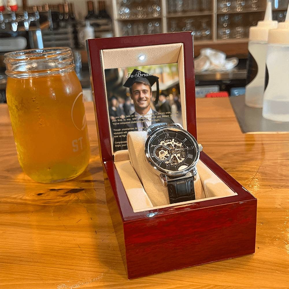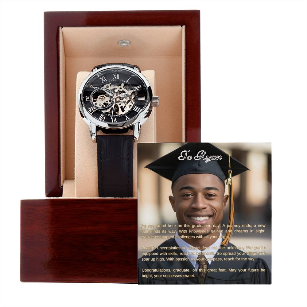 Graduation Gift For Son | Custom Message Card, Luxury Box & Openwork Watch