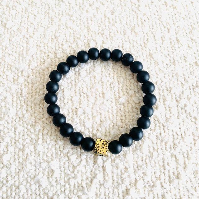 Matte Black Onyx Bead Bracelet with Gold Lava Stone