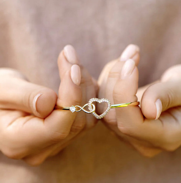 Vier de schoonheid van eeuwige liefde met de Infinity Heart -armband, een symbool van toewijding, passie en de onbreekbare banden die ons samenbinden. Dit tijdloze stuk is meer dan alleen sieraden; Het is een zinvolle uitdrukking van liefde die een leven lang meegaat.