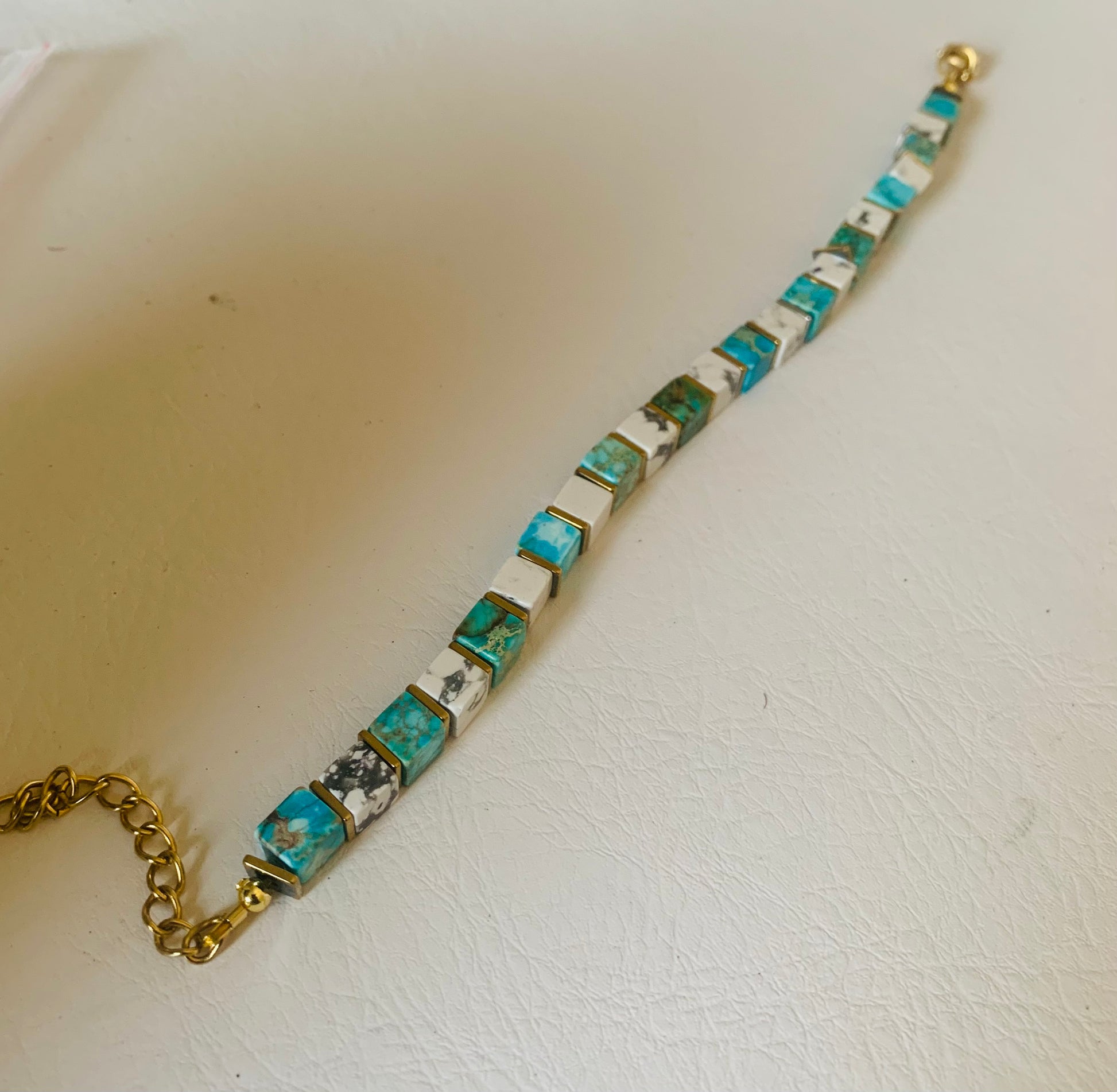 Howlite & Emporer Pine Cube Bead Bracelet 6mm
