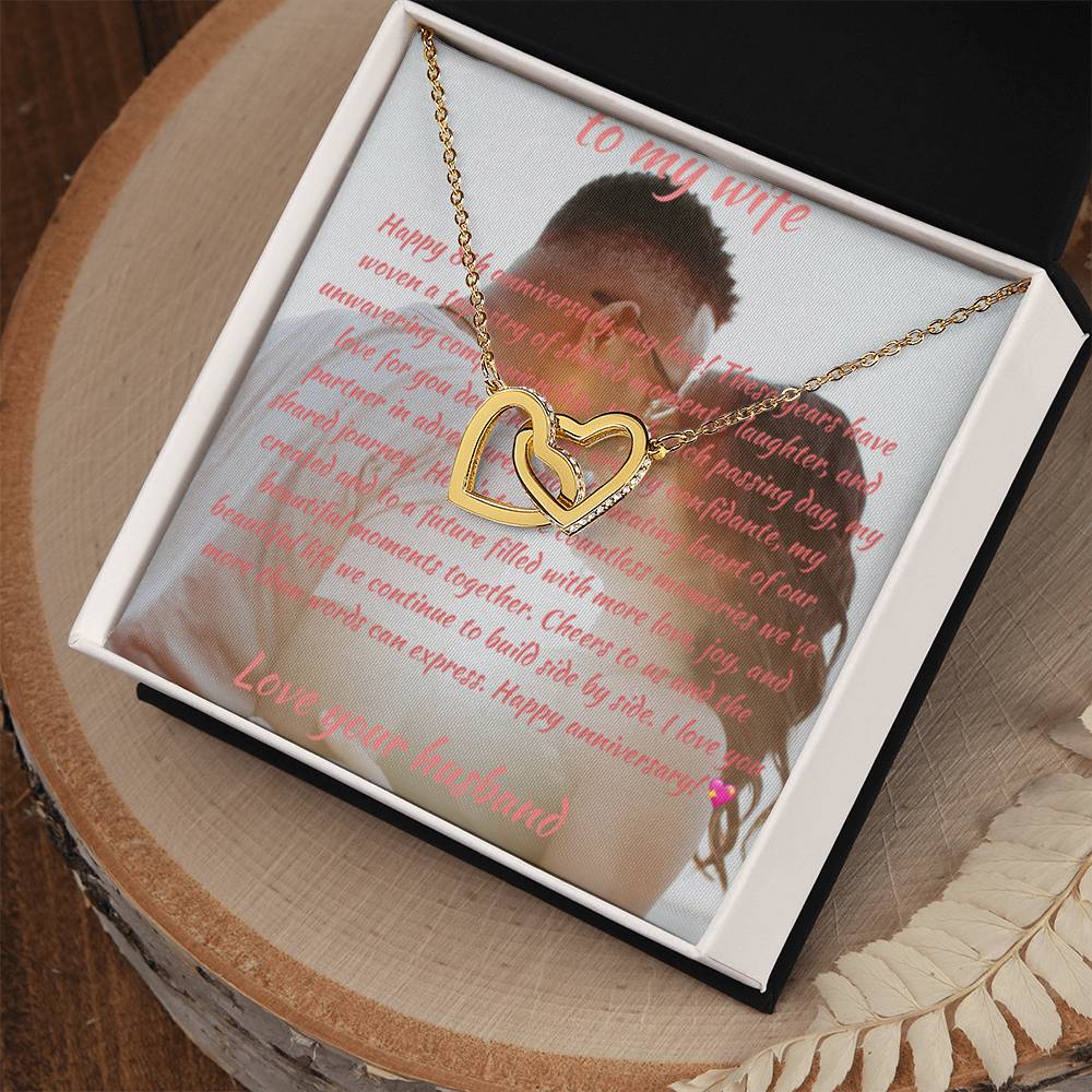 Verjaardagscadeau | Aangepaste berichtenkaart en in elkaar grijpende harten ketting