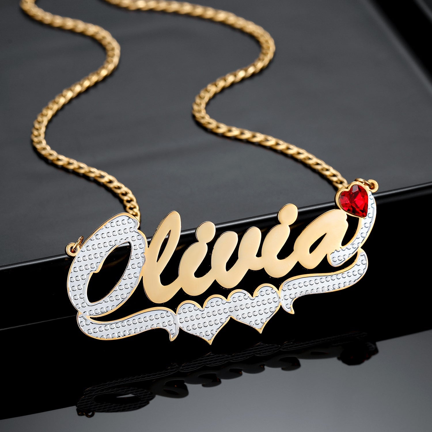 Birthstone Two Tone Name Necklace
