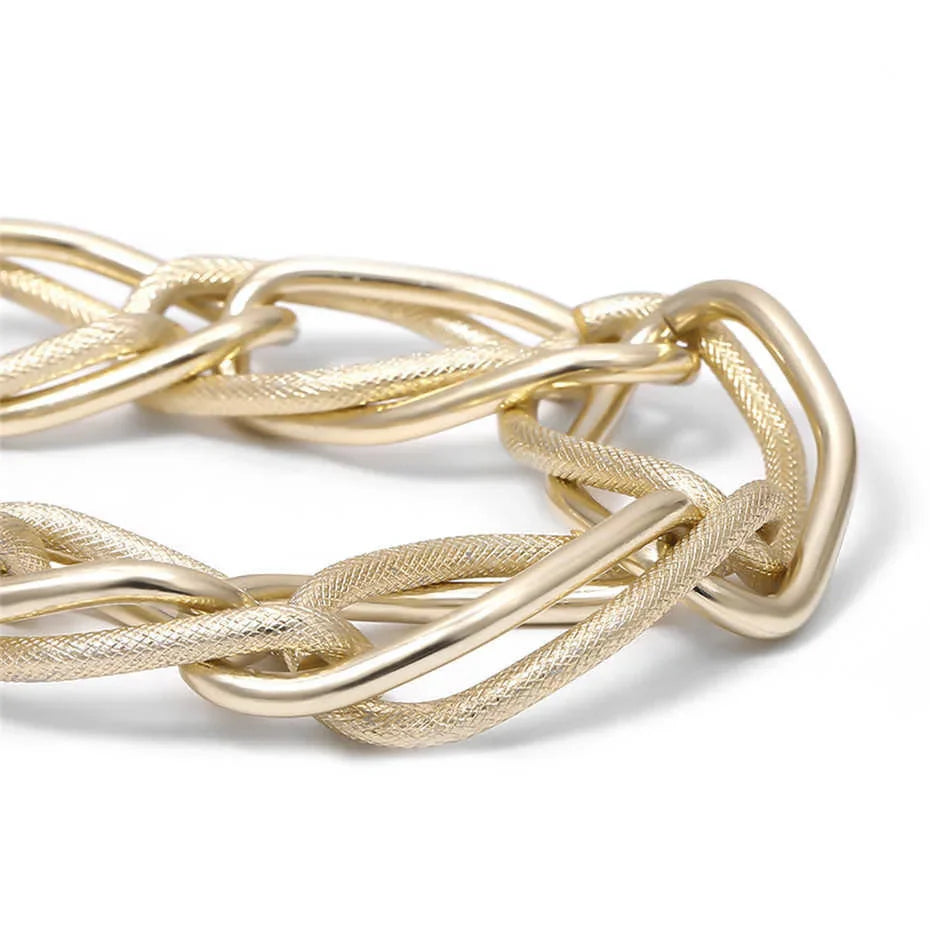 - Style: This chunky necklace features a dynamic dual geometric design—one half is textured throughout, while the other half boasts a sleek, smooth polished finish. The contrasting textures create a visually stunning piece that is both bold and refined, making it an eye-catching addition to any look.