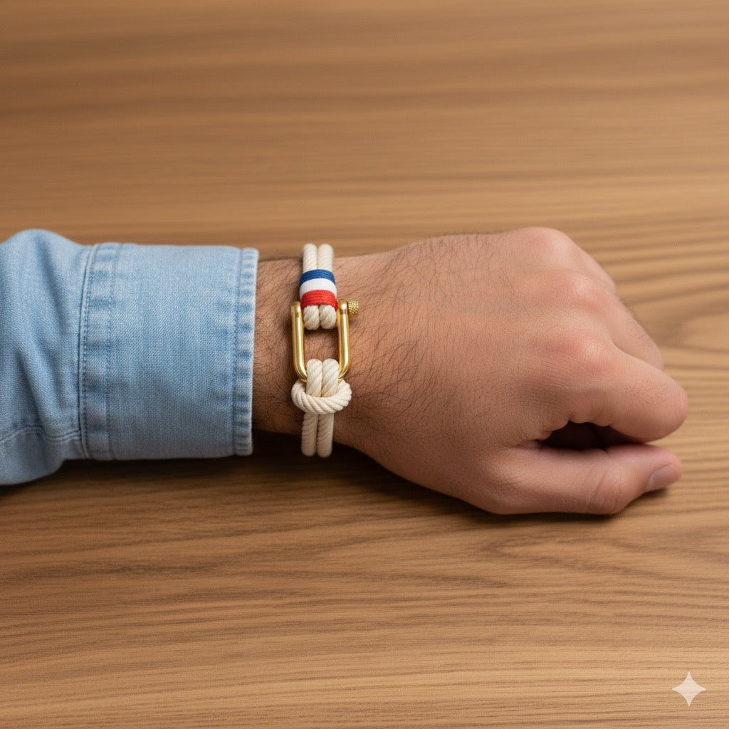 Que vous fêtiez vos racines, que vous soutienz l'équipe nationale ou que vous soyez simplement attiré par son design frappant, le bracelet de corde nautique France est la pièce parfaite pour garder votre connexion à portée de main.
