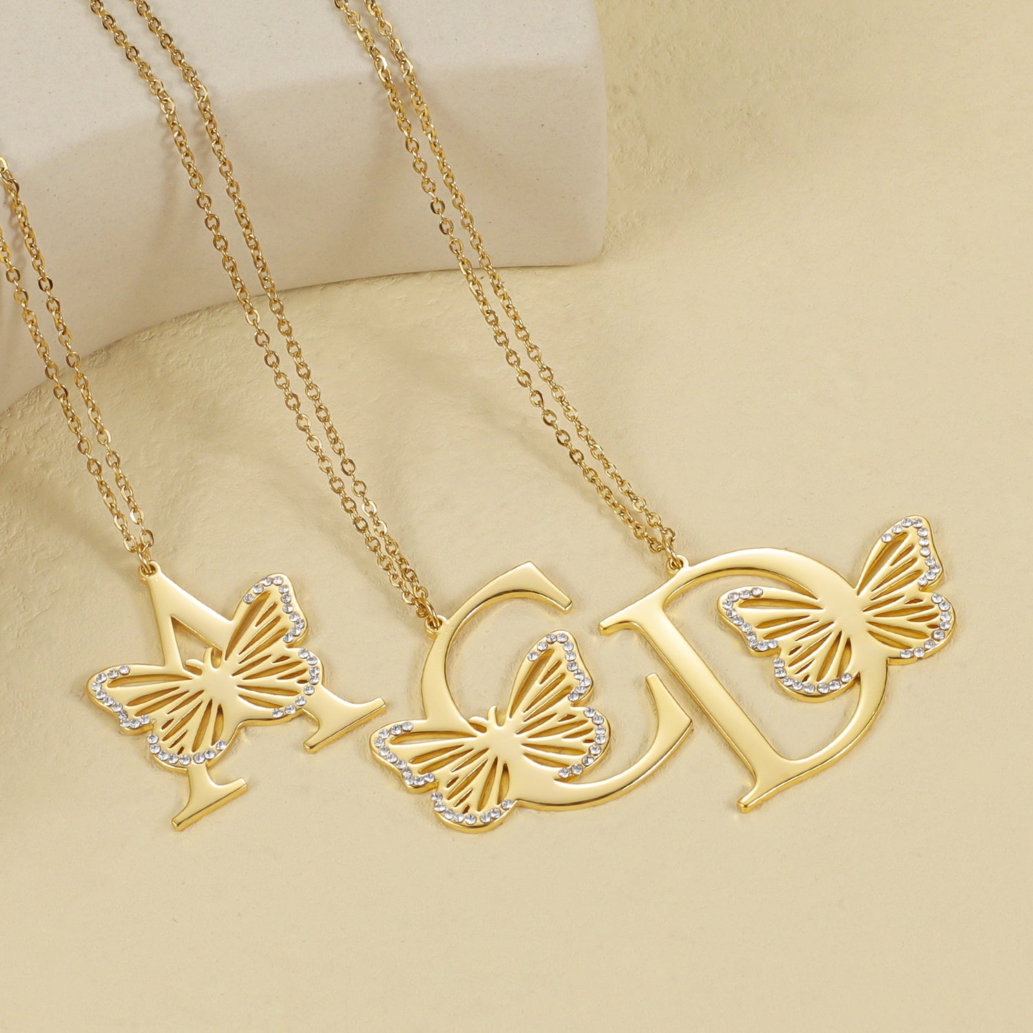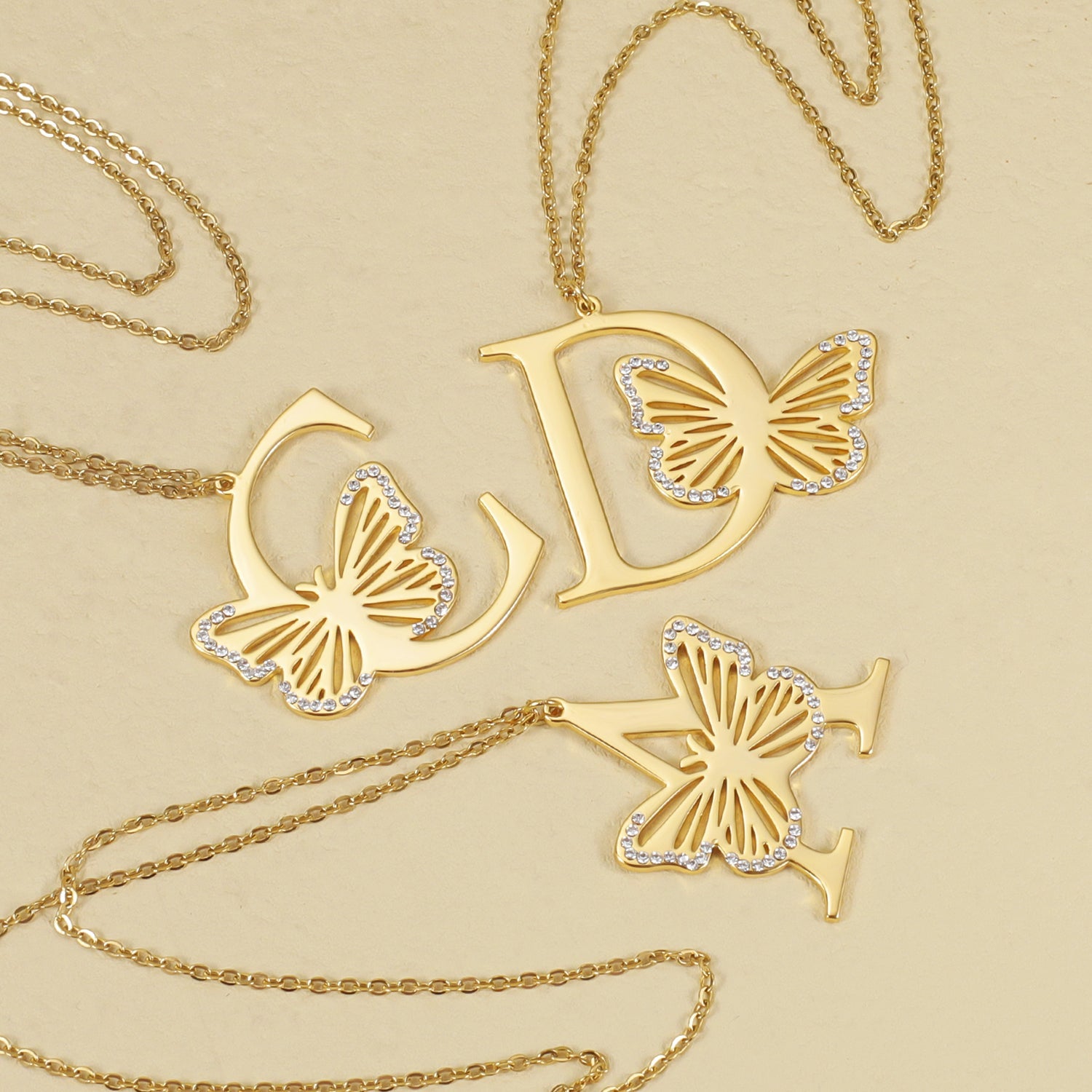 Crystal Butterfly Letter Necklace