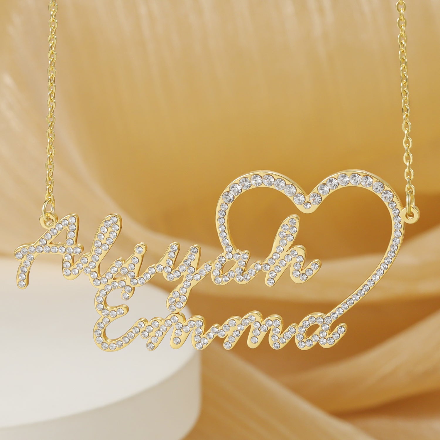 Make a bold statement with our Iced 2 Name Heart Necklace. This dazzling piece features your chosen name or word, beautifully adorned with sparkling crystals that catch the light from every angle. Crafted with premium stainless steel, this necklace combines luxury and durability, making it perfect for daily wear or special occasions. Whether you’re treating yourself or gifting someone special, this personalized necklace adds a touch of glamour and individuality to any look. Elevate your style with the ultimate blend of shimmer and personalization