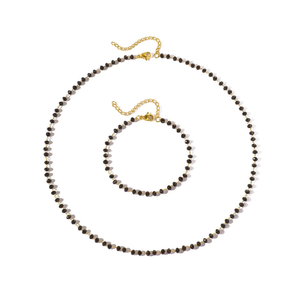 Dainty Beaded Black Crystal Necklace and Bracelet Set