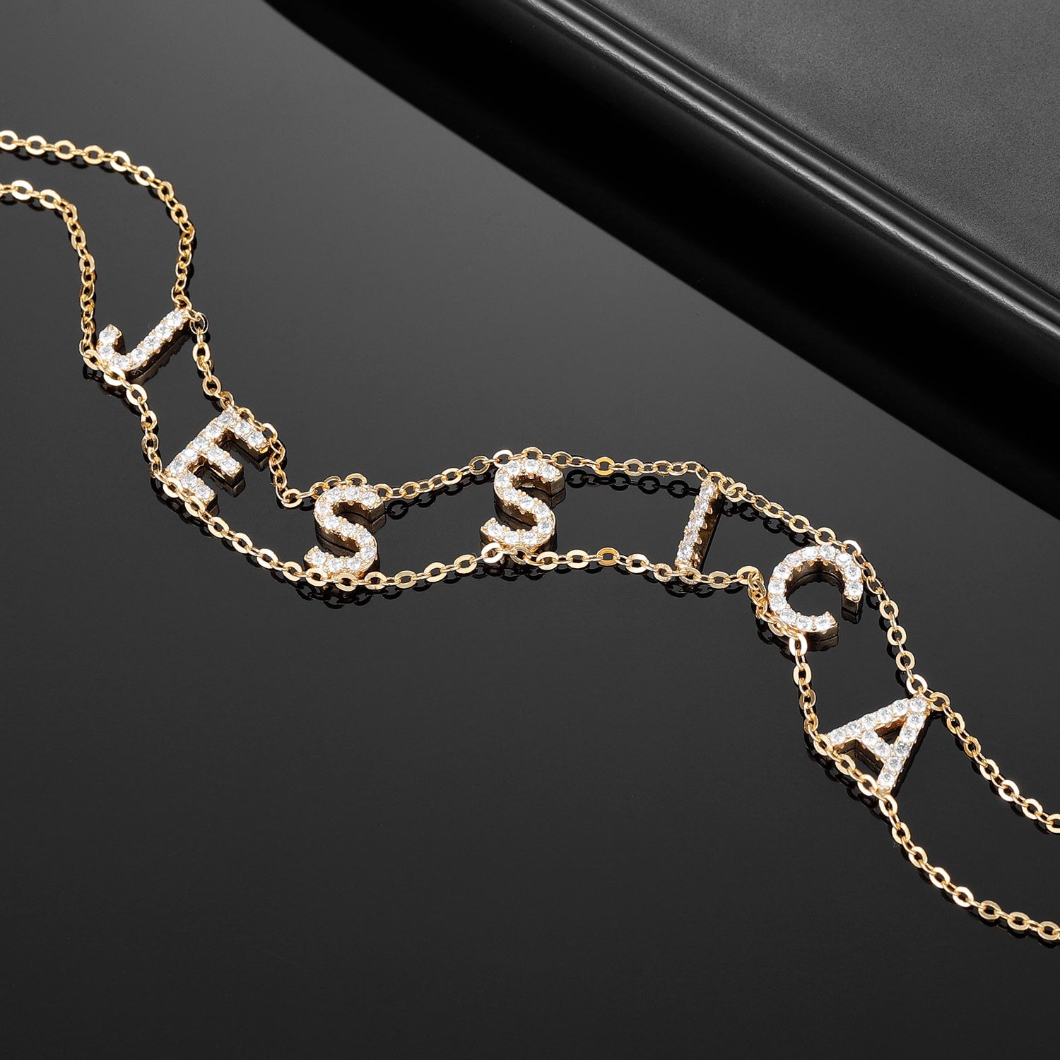Our Double Chain Diamond Name Necklace is a sleek and modern accessory that blends geometric elegance with personal meaning. The minimalist hexagon pendant, crafted from durable stainless steel with a name or word of your choice, making it a unique and meaningful piece.