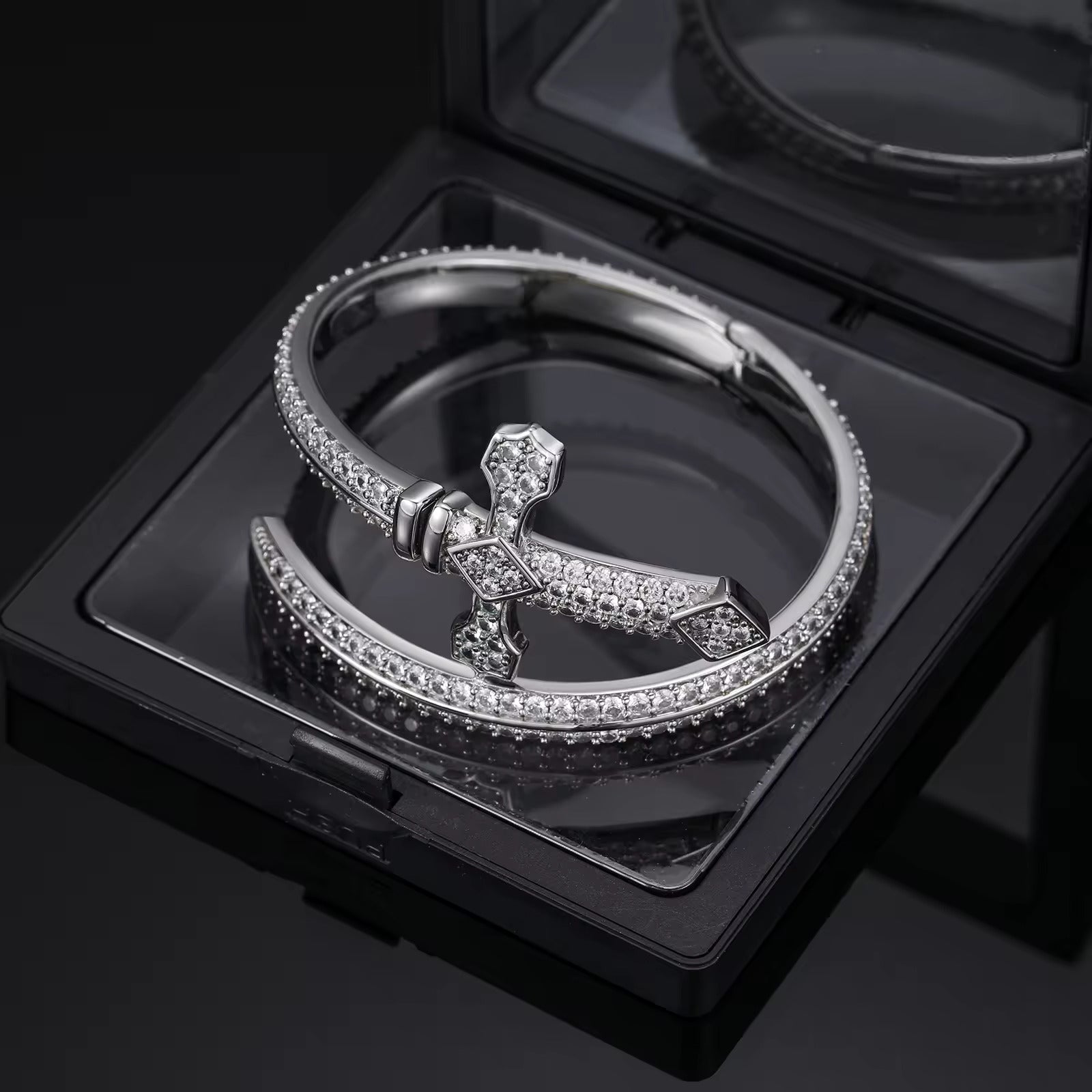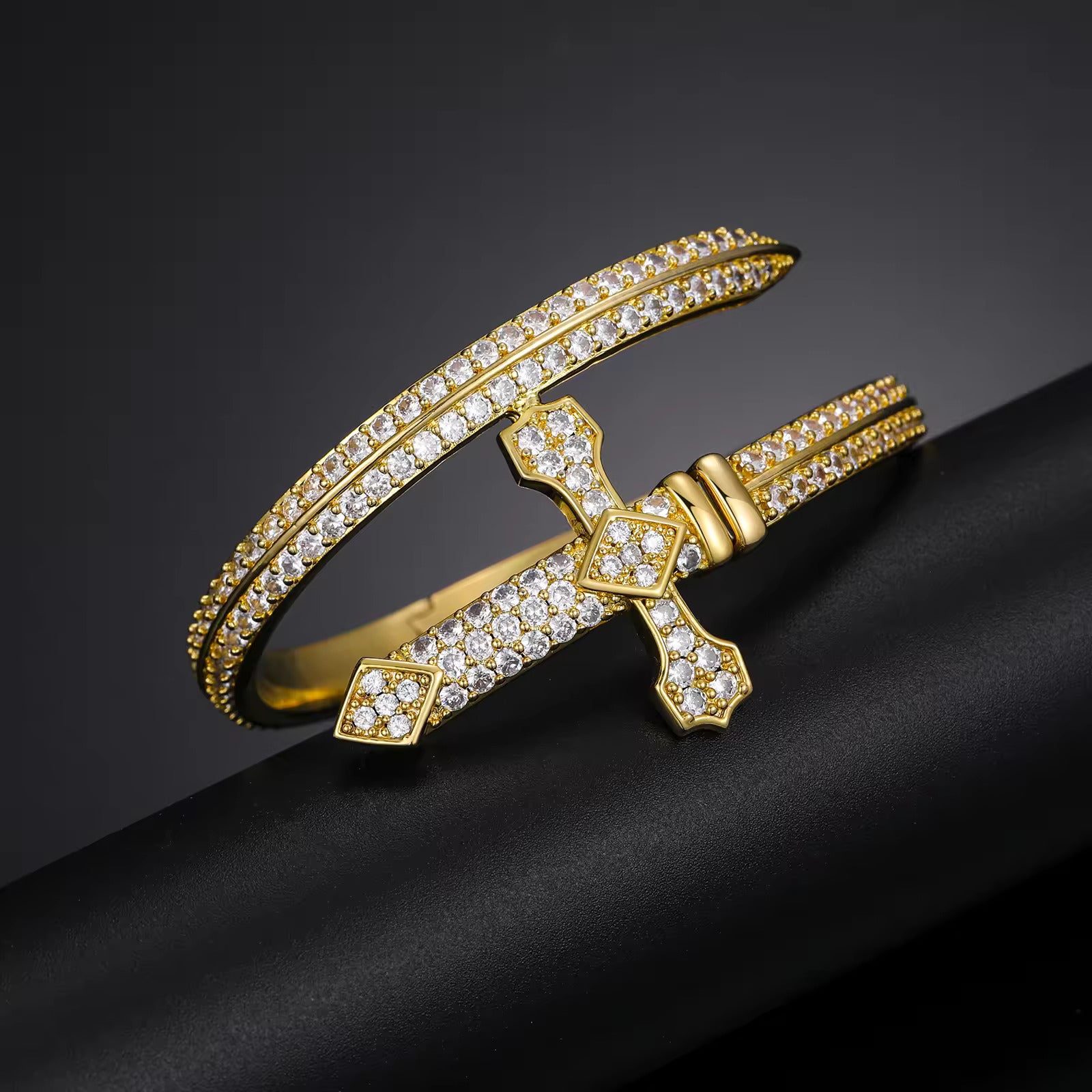 VVS Moissanite Diamond Iced Out Sword Cross Bangle