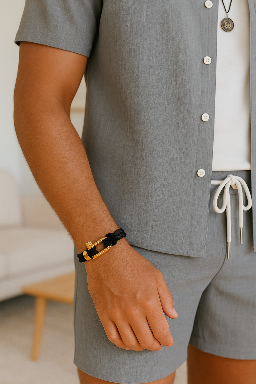 This men’s nautical rope bracelet is designed for everyday wear. It features a double strand stainless steel U shape, offering both style and functionality. Perfect for those who appreciate nautical aesthetics, this bracelet adds a unique touch to any outfit.