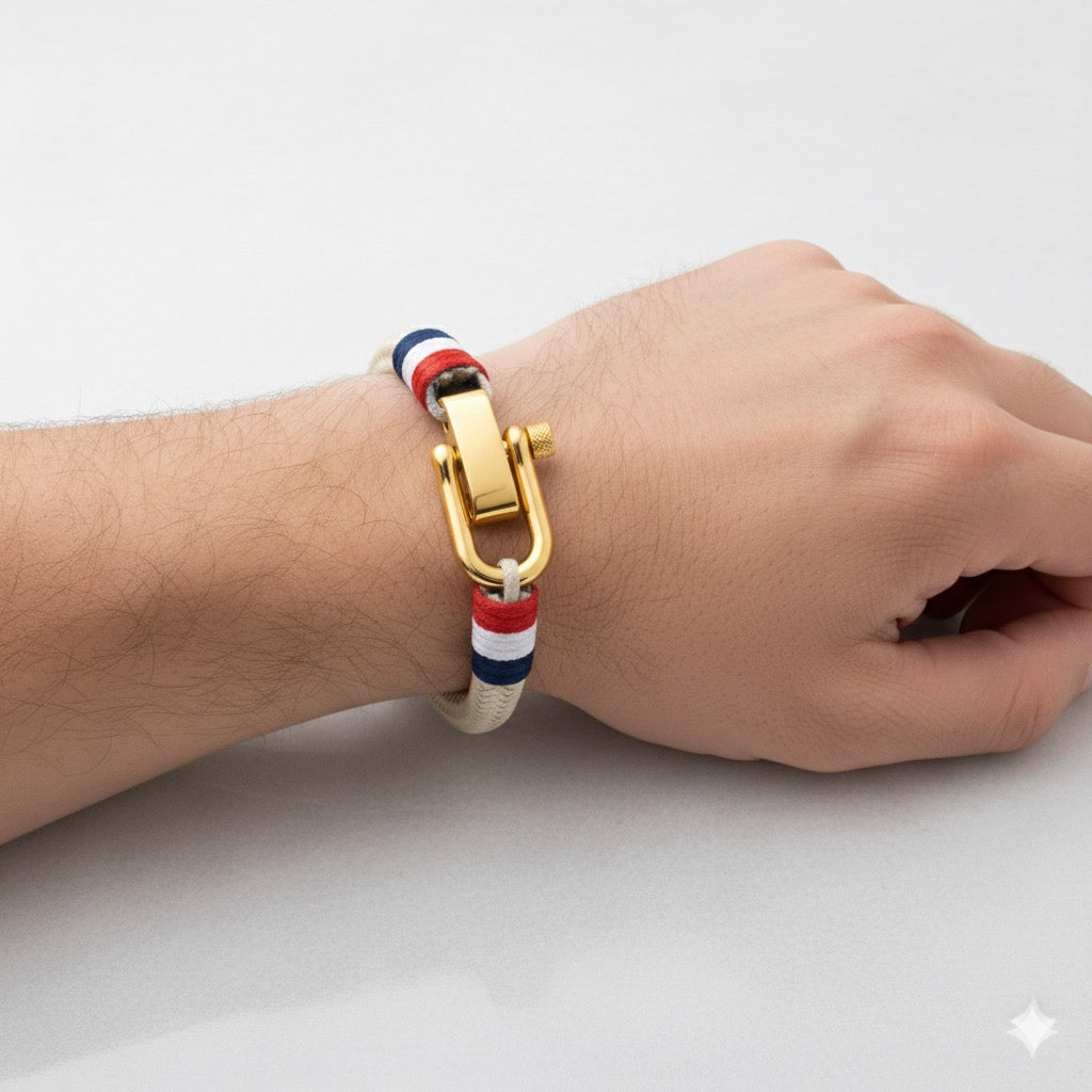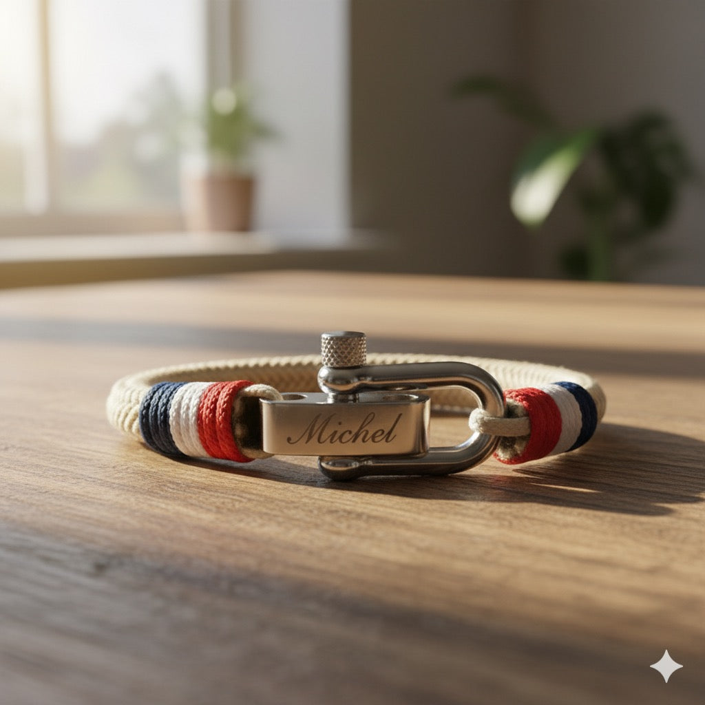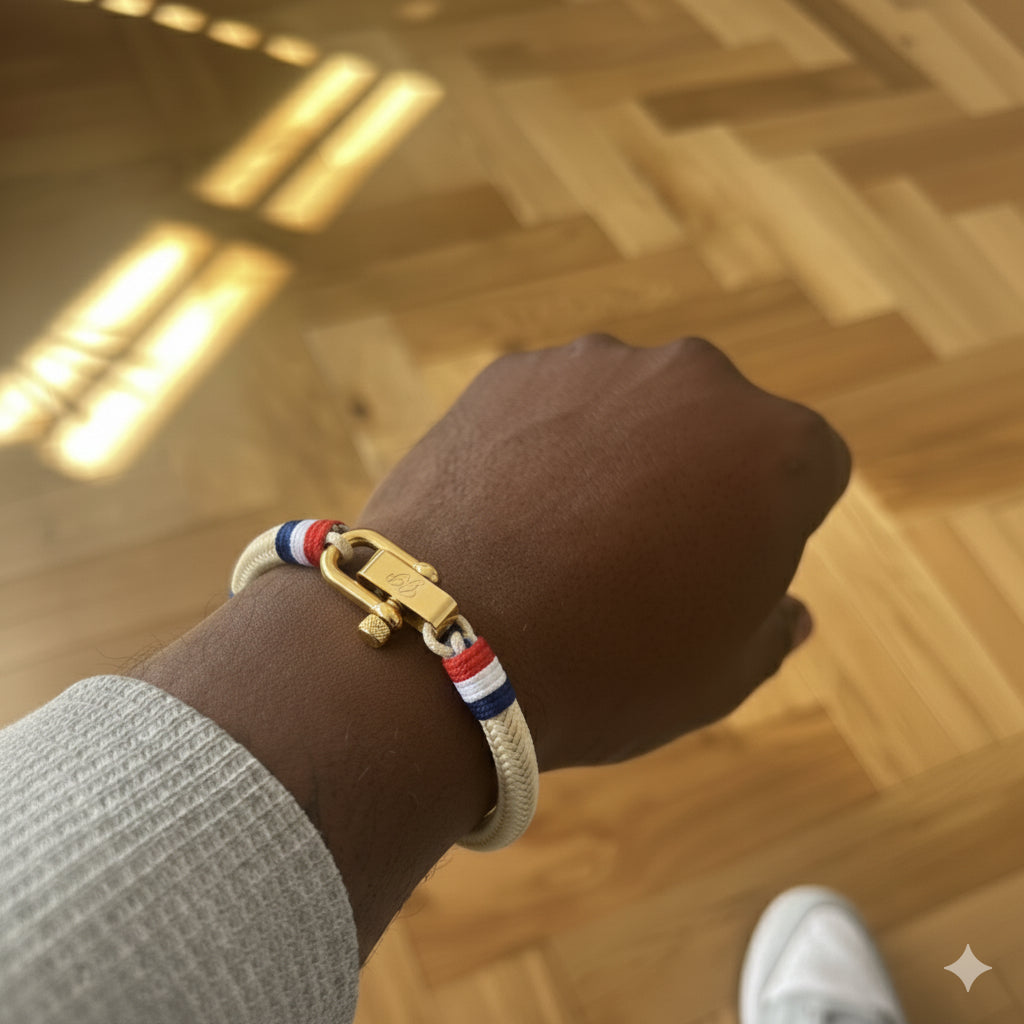 Que vous fêtiez vos racines, que vous soutienz l'équipe nationale ou que vous soyez simplement attiré par son design frappant, le bracelet de corde nautique France est la pièce parfaite pour garder votre connexion à portée de main.