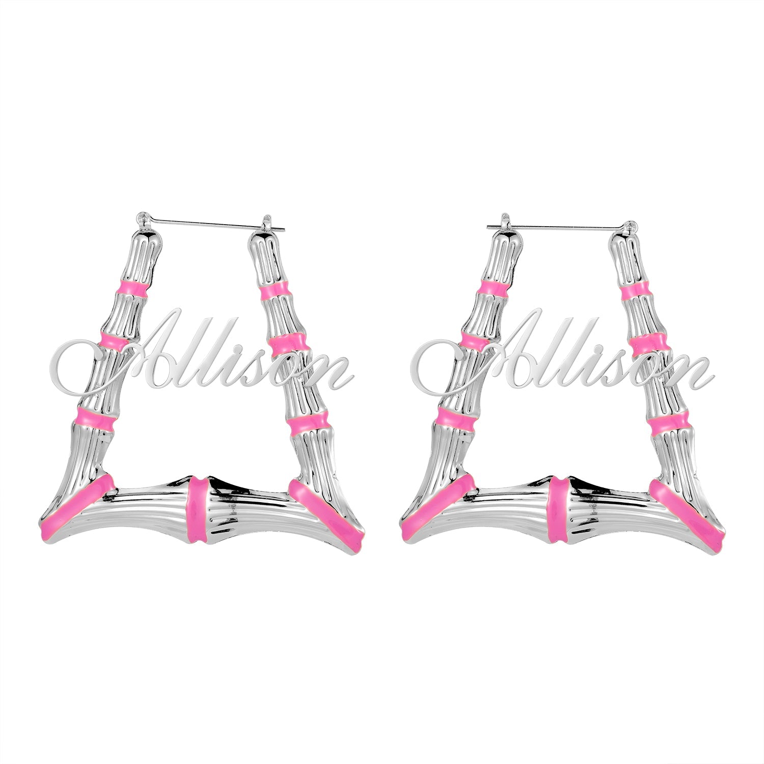 Pink Trapezoid Name Bamboo Earrings QE415